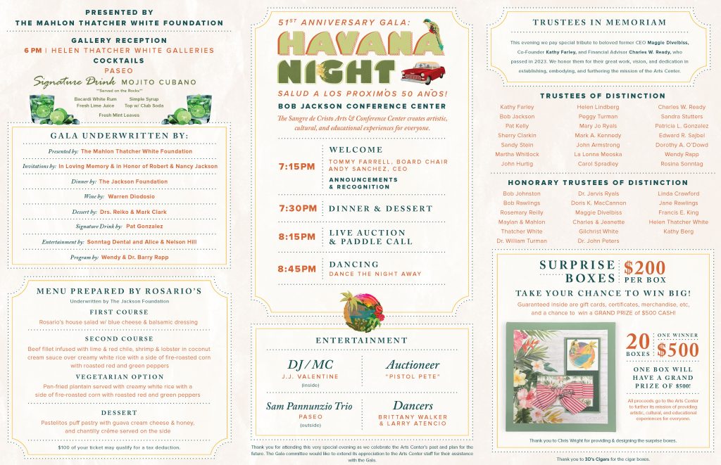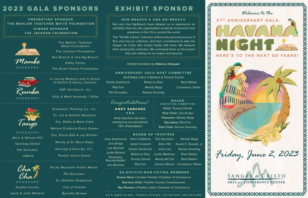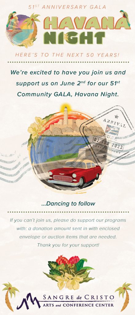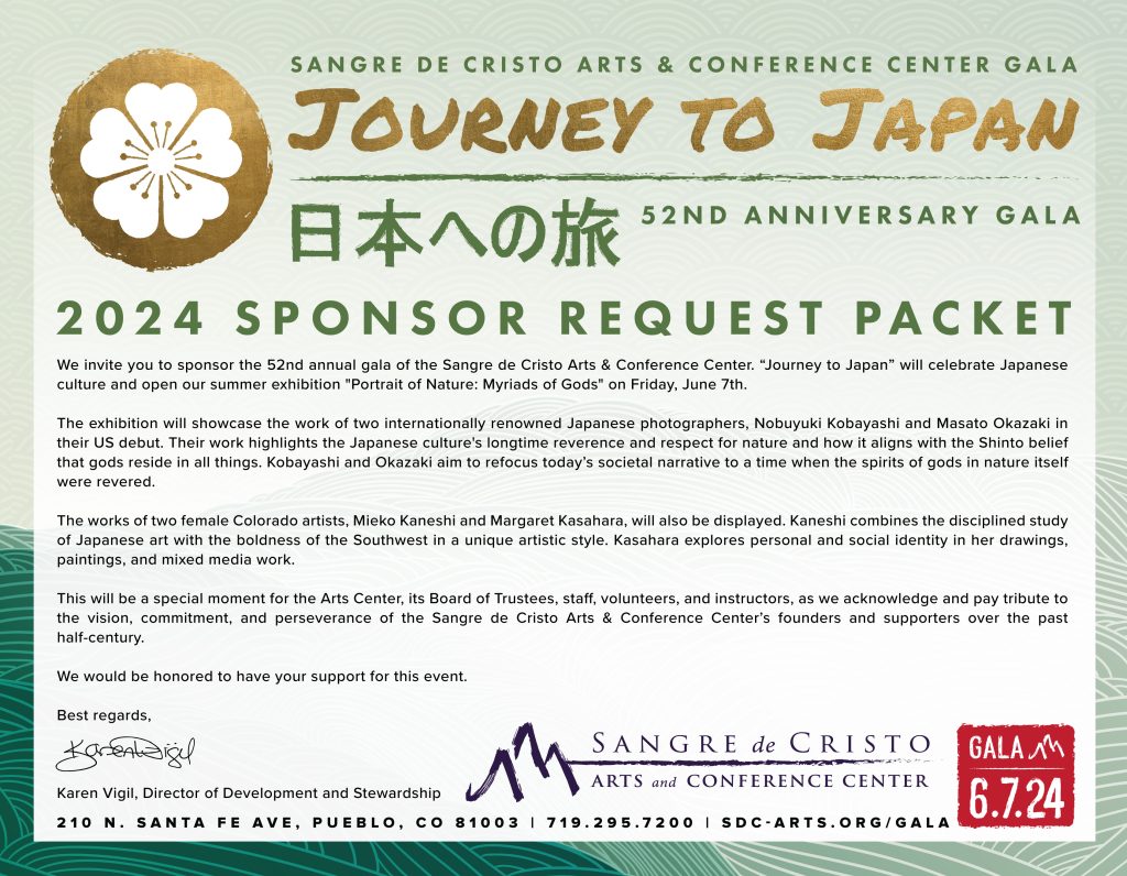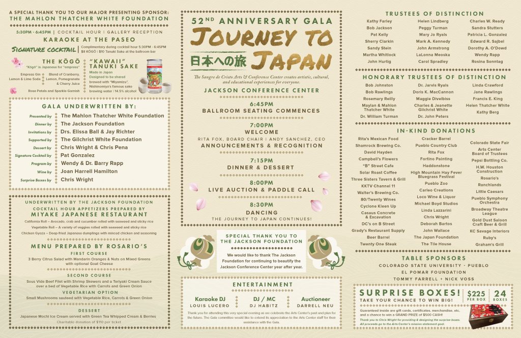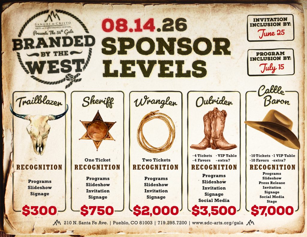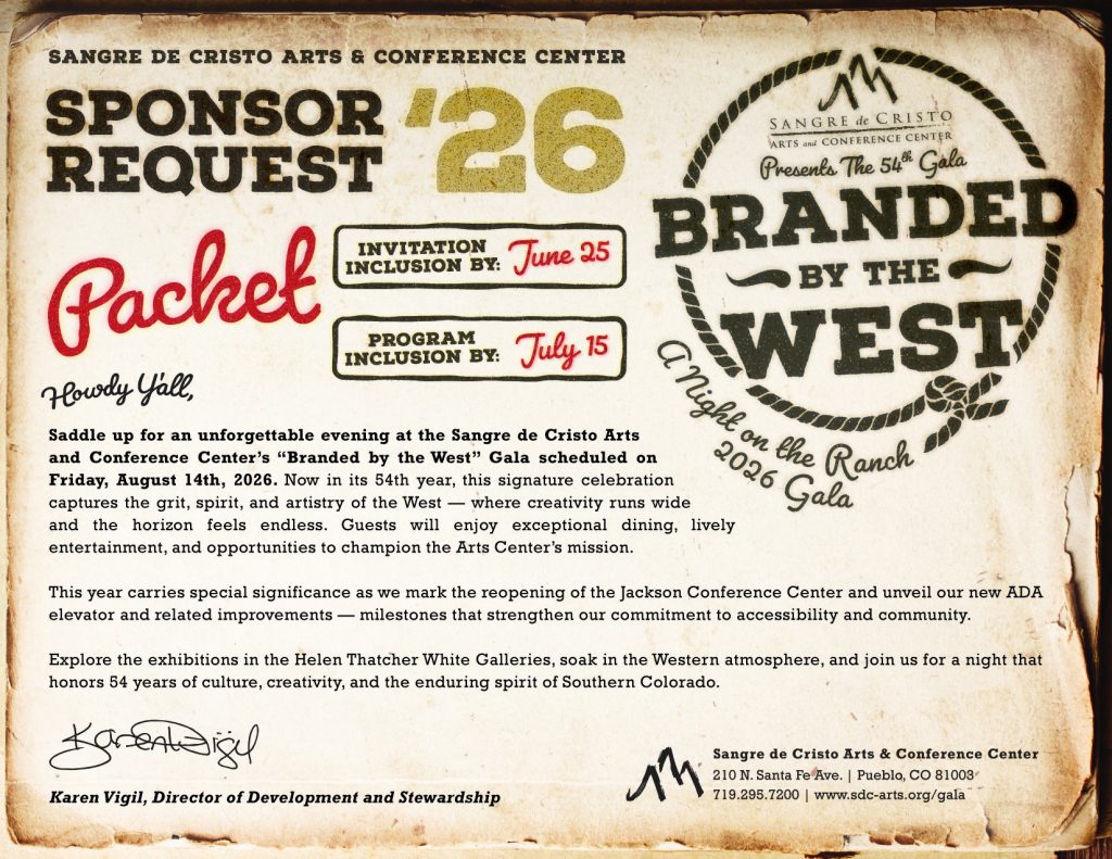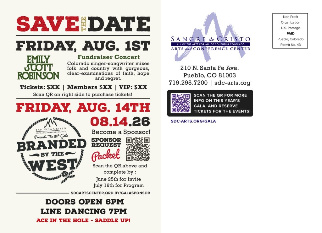 For the current annual year, we are starting with a Save the Date postcard, and the event is held at a later date due to construction and expansion in Sangre de Cristo Arts and Conference Center, building a new elevator in the Jackson Conference Center. We are still finalizing the Sponsor Packet as of March 2026.