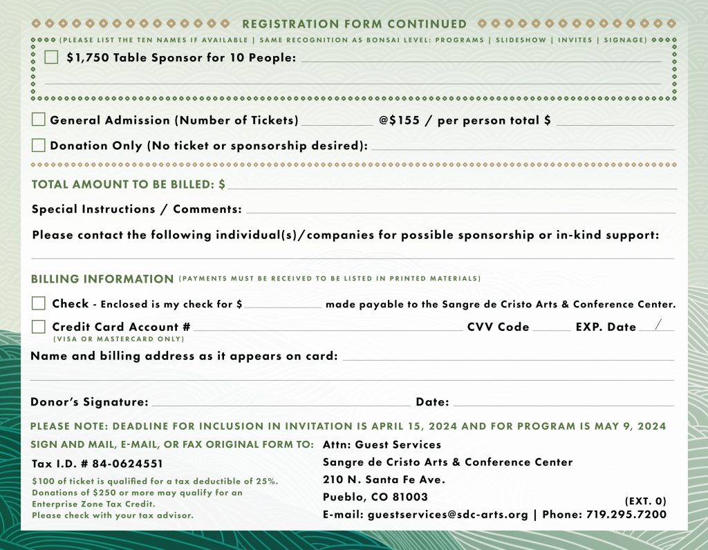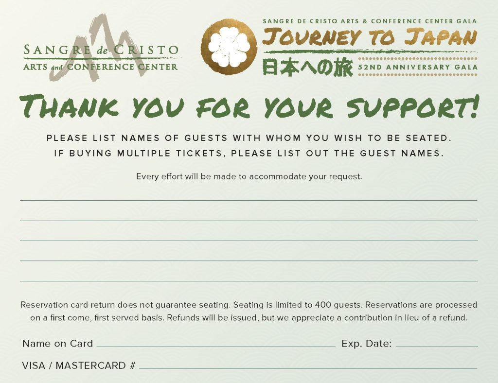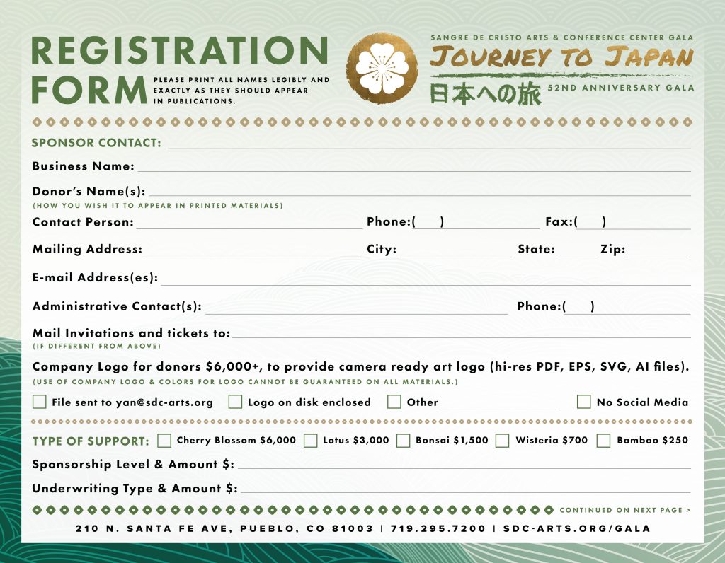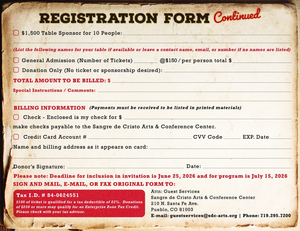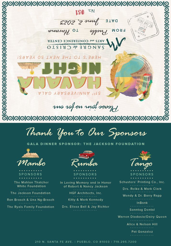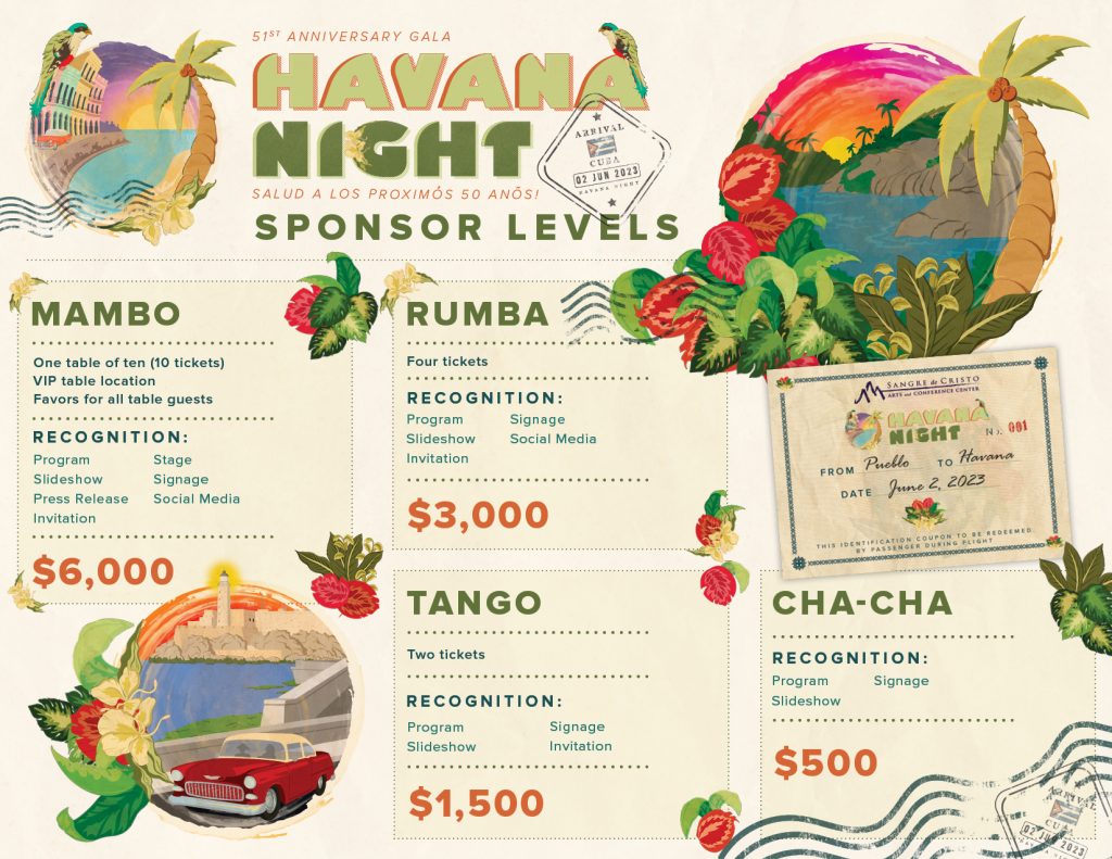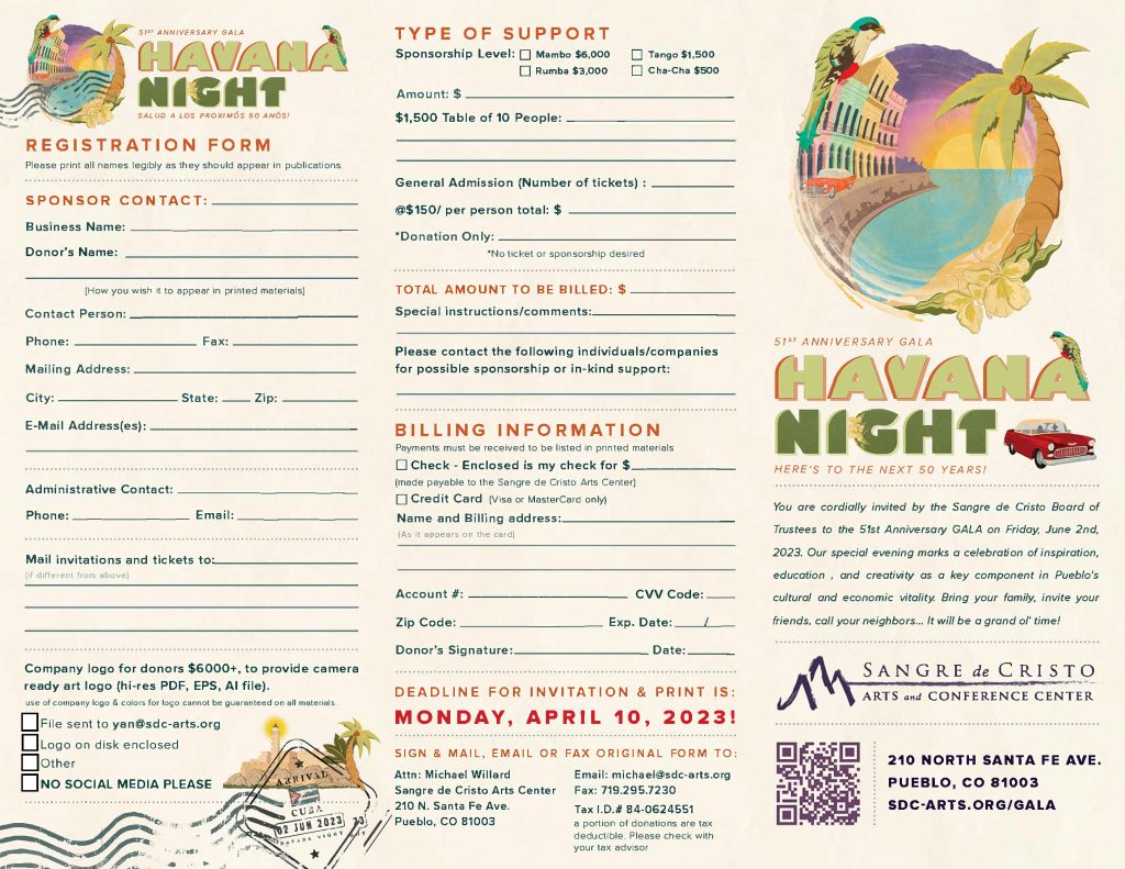 For the current annual year, we are starting with a Save the Date postcard, and the event is held at a later date due to construction and expansion in Sangre de Cristo Arts and Conference Center, building a new elevator in the Jackson Conference Center. We are still finalizing the Sponsor Packet as of March 2026.