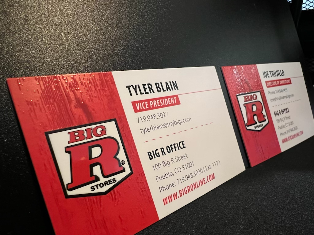 Insider Loyalty redesign and delivery calculator advertising for in store display.The business cards were printed with raised UV to make the logo and wood marks on the red to pop out, be recognizable along the touch of the cards. The results were a company wide shift to transition into the new card designs. I handled all the orders for all 100+ employees that need their cards printed.