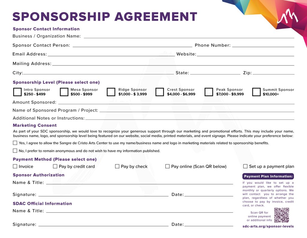 Sponsorship / AD Playbill Agreement for School of Dance
